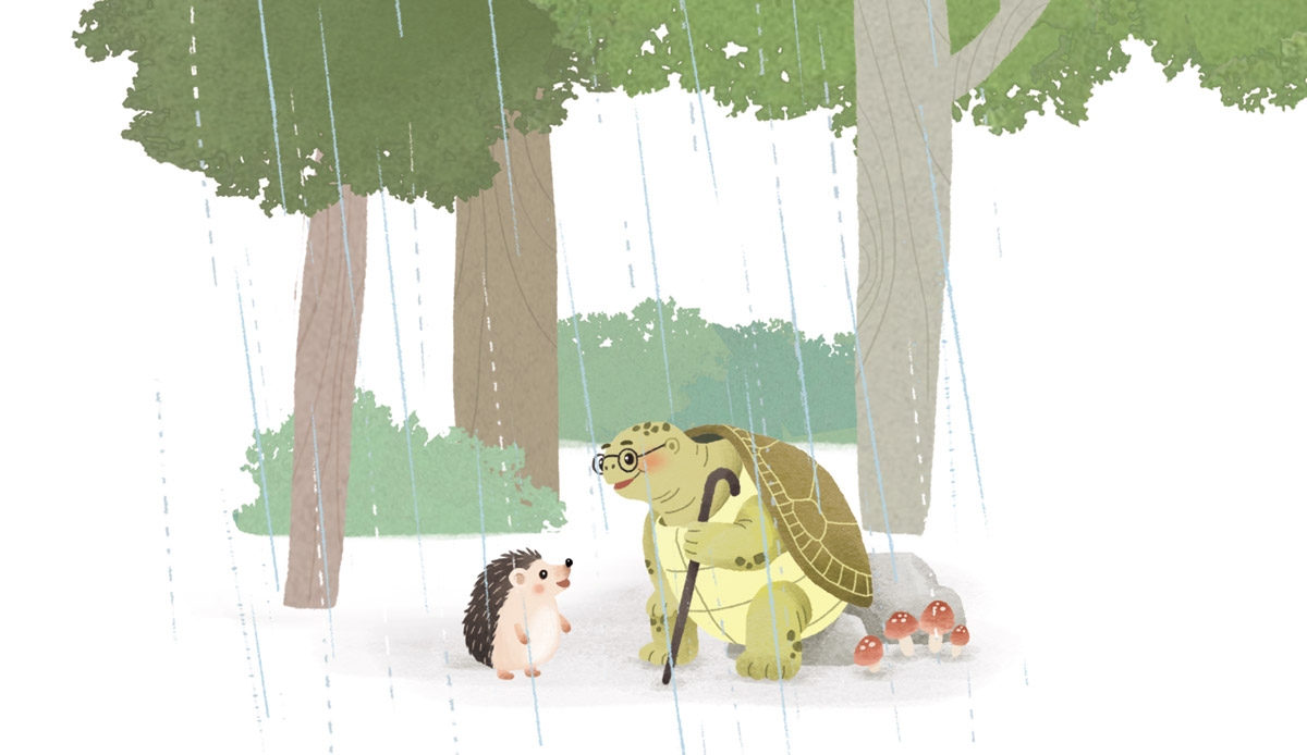 “고슴도치 아니니? 비가 많이 오는데 그 짧은 다리로 어딜 가는 거야?”