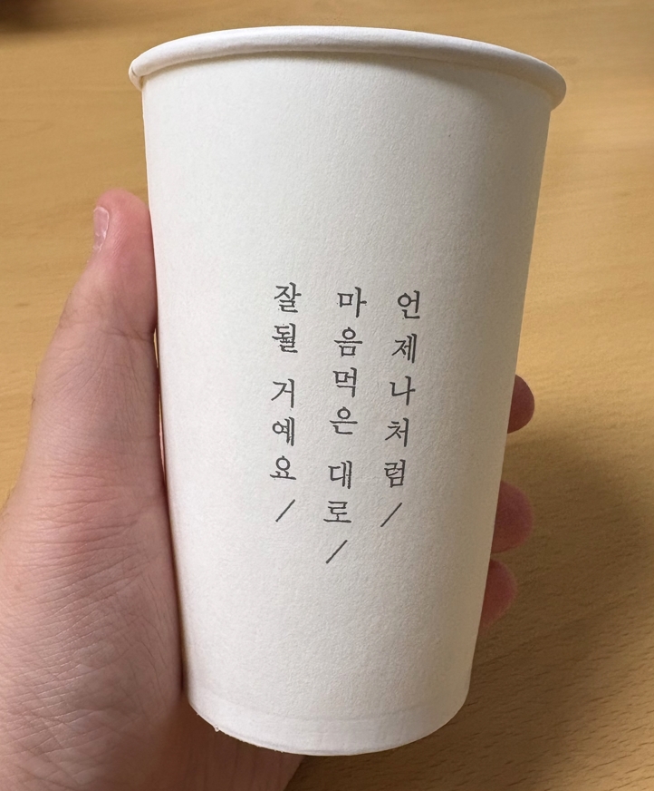 컵에 쓰인 문구를 보고 감동받았습니다.