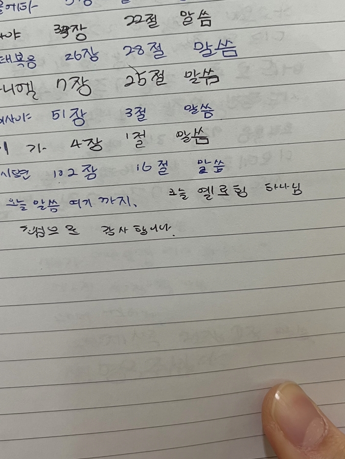 초등부 식구가 쓴 설교 청취록의 마지막 문장