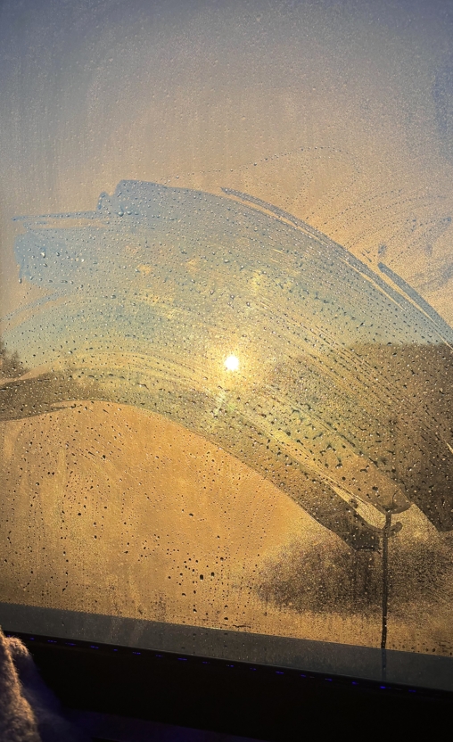 서리가 잔뜩 낀 창문을 손으로 쓱 닦아 보니